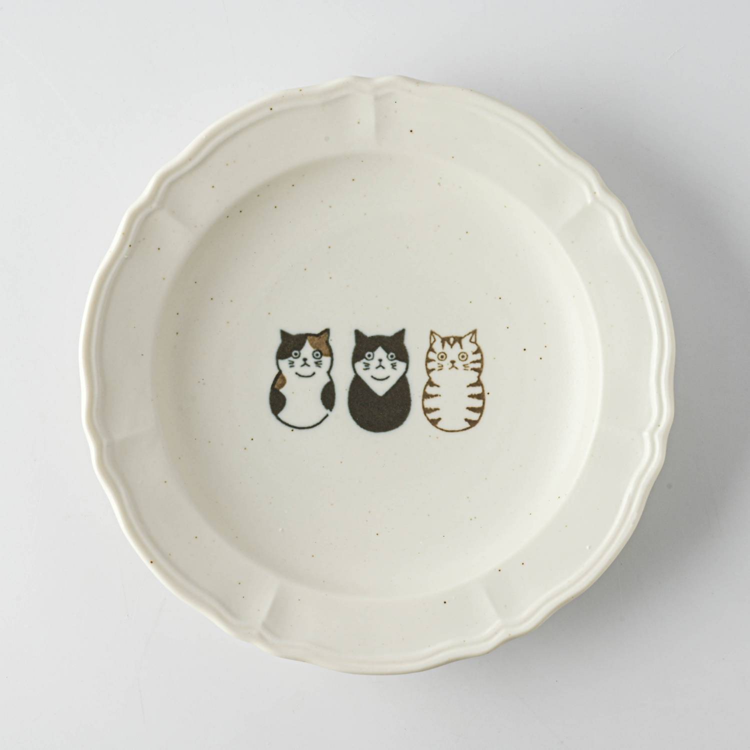 【商品名】SHICHITA シチタ 猫トリオ 17cmレリーフ皿 【サイズ】幅/約16.7 x 16.7cm 高さ/約2.8cm 【2点重ね時高さ】約3.5cm 【重量】約235g 【素材】磁器・日本製/美濃焼 【質感】さらさら 【電子レンジ】OK 【家庭用食洗機】OK 【パッケージ】個別箱なし 【おすすめ用途】デザート皿、菓子皿、サラダプレート、取り皿、おやつ皿、銘々皿、パン皿、 【シリーズ】SHICHITA/シチタ