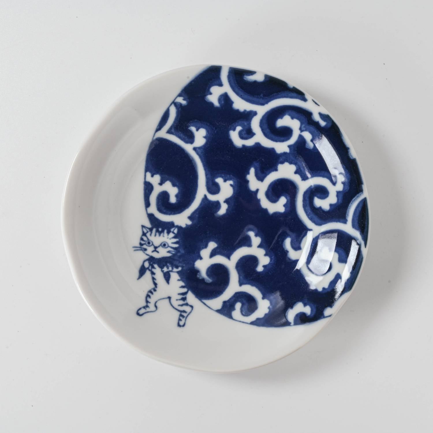 【商品名】猫 シチタ ソメネコ 13cm皿 唐草 日本伝統模様 【サイズ】幅/約13.5 x 13.5cm 高さ/約2.3cm 【2点重ね時高さ】約3.2cm 【重量】約160g 【素材】磁器・日本製/美濃焼 【質感】つるつる 【電子レンジ】OK 【家庭用食洗機】OK 【パッケージ】個別箱なし 【おすすめ用途】デザート皿、菓子皿、サラダプレート、取り皿、おやつ皿、銘々皿 【シリーズ】ソメネコ